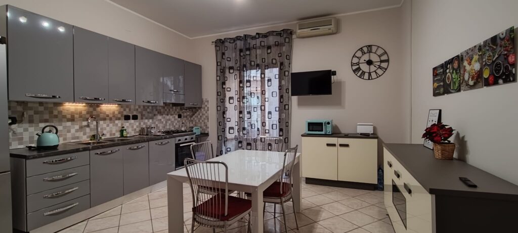 Qui troverete tutto il necessario per rendere il vostro soggiorno rilassante e piacevole. La struttura è dotata di camere spaziose e arredate con gusto, con letti comodi, biancheria pulita e armadi capienti per i vostri effetti personali. Il soggiorno è accogliente, con divani confortevoli, una TV a schermo piatto e Wi-Fi gratuito, così potrete rimanere sempre connessi. La cucina è moderna e completamente attrezzata con frigorifero, forno, piano cottura, microonde, macchina da caffè e tutti gli utensili necessari per preparare i vostri piatti preferiti. I bagni sono puliti e funzionali, dotati di doccia o vasca, asciugamani, prodotti per l’igiene e phon.